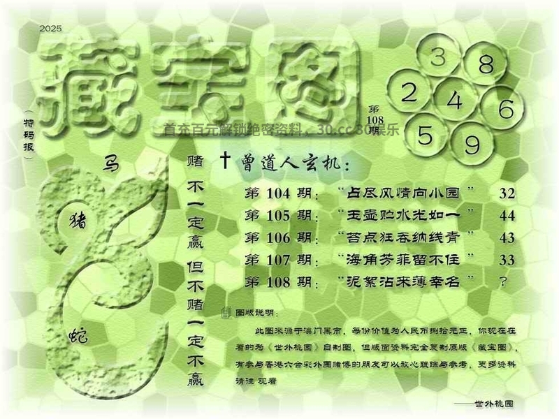 104期:大丰收七肖【鼠羊马猴猪龙牛】开:狗32错 |