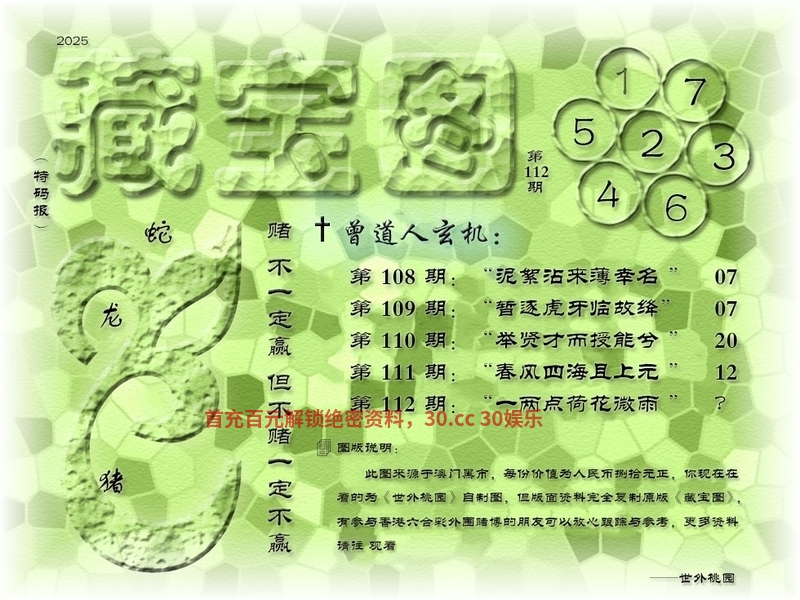 111期:大丰收七肖【马蛇狗牛虎鼠龙】开:马12准 |